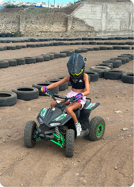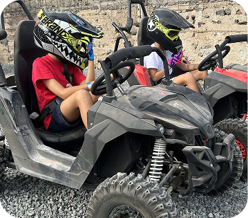 Haz un cumple inolvidable en Playland con buggies y quads para niños de 5 a 12 años, circuito controlado y monitores.
